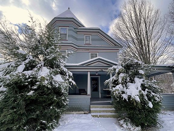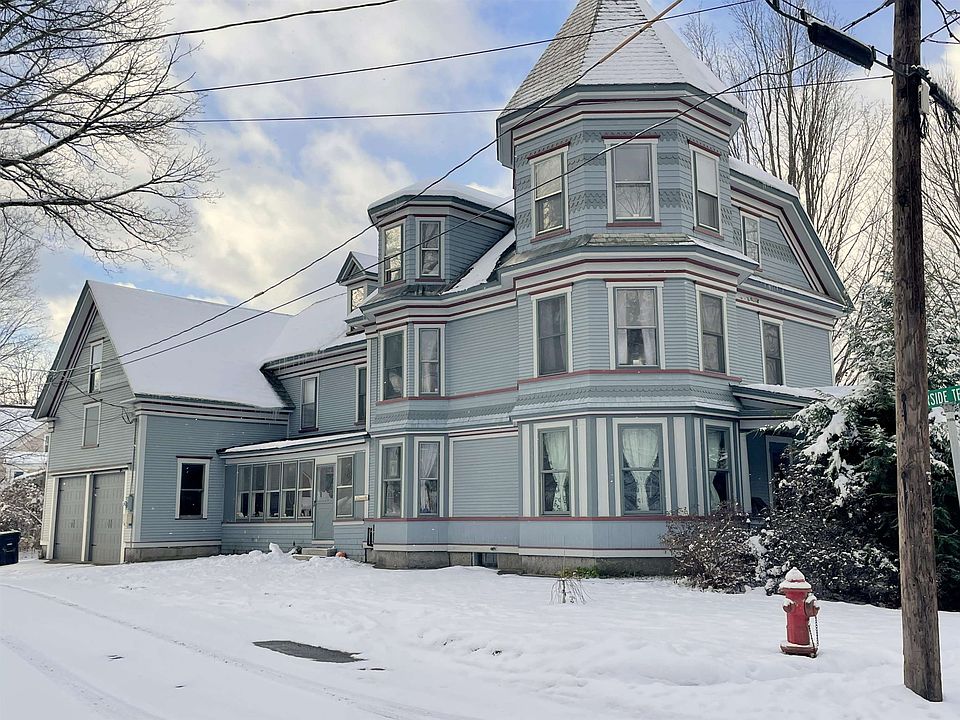Exceptional Victorian home with all the character your would expect in a Circa 1860 home! Being sold furnished this home won't disappoint. Completely renovated on all 3 floors so just move right in. Six bedrooms, 2 full baths with a bedroom and bath on the first floor, large kitchen area complete with granite countertops, breakfast bar with dining area and gas fireplace, laundry room, office/study or bedroom, formal dining room, living room on the front of the home, large foyer with sweeping staircase to the second floor which hosts a full bath and bedrooms and another staircase to the third floor with more bedrooms and huge attic for tons of storage. Spacious two car attached garage. Relax and enjoy life on the enclosed sunny porch or the lengthy covered porch on the front of the home or the deck on the side where there are perennials, shrubbery and lawn space to enjoy more gardens! No showings please from December 16th to December 19th due to family Christmas gathering.