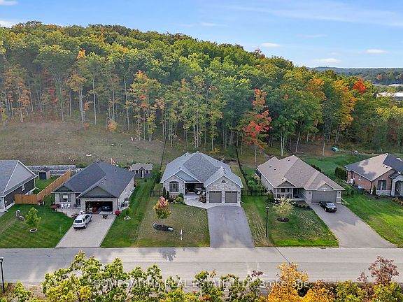 Welcome to Haven on the Trent where luxury living meets natural beauty. This stunning custom built brick-and-stone bungalow was thoughtfully designed with elegance and comfort in mind.The main floor boasts an open-concept layout with engineered hardwood throughout, soaring vaulted ceilings, and an abundance of natural light. A versatile formal dining room or office sits at the front of the home, complemented by a stylish powder room.The chef-inspired kitchen features a large centre island with breakfast bar, custom cabinetry, quartz countertops, and premium GE Café fridge and stove, seamlessly flowing into the eat-in dining area with a walkout to the deck and professionally landscaped backyard. The great room impresses with a dramatic gas fireplace and vaulted ceilings, perfect for both everyday living and entertaining.The main-floor primary suite overlooks the ravine lot and showcases tray ceilings, a walk-in closet and a 4pc ensuite with double sinks and tiled shower. A second bedroom on the main level also enjoys its own private 4pc ensuite. Convenient main-floor laundry/mudroom with garage access completes this level.The lower level is bright and inviting, with above-grade windows, a spacious rec room, a bar area with rough-in for sink, a full 3pc bathroom, and two additional bedrooms one with a soundproof walk-in closet ideal for musicians or gamers, and another featuring two oversized walk-in closets. Outdoors, enjoy a fenced backyard oasis with professional landscaping, this 250ft deep lot is perfect for relaxing or entertaining. Ideally located, this home offers the best of both worlds peaceful nature and everyday convenience. Just steps from the Trent River, scenic trails, and Sunny Life Recreation & Wellness Centre, and close to Seymour Conservation Area, Ferris Provincial Park, the suspension bridge, downtown Campbellford shops, bakeries, and the hospital.This is more than just a home its a lifestyle.