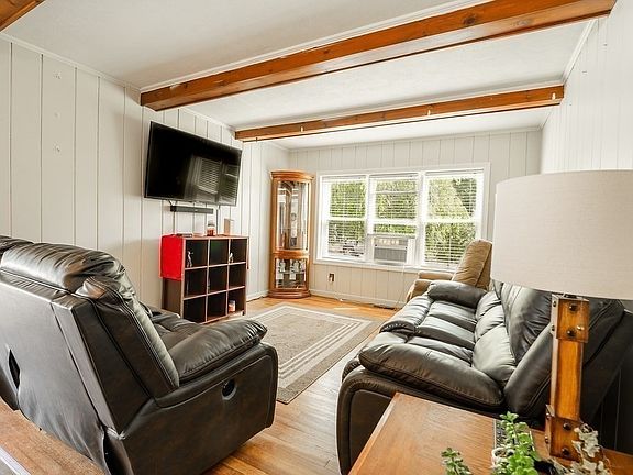 Cute as a button starter home in a convenient and desirable neighborhood close to all amenities, with easy access to the MASS Pike. This cute Cape home features 3 beds, 1 bath with walk in shower recently updated, an updated kitchen and a large family room with gorgeous exposed ceiling beams. The first floor also has an adorable four season porch off the kitchen for all year access. HUGE master suite with double closets and wood beams! There is a lot of natural light throughout the home with replacement Harvey windows. Outside has a front composite deck and wheelchair ramp that can easily be removed, if not needed. Long driveway for plenty of parking sectioned off by a dividing white vinyl fence. Two car garage. Nice open yard. This home will not last. No showings until Open House Sunday 7/7 12-1:30. H&B Tues 7/9 by 8pm