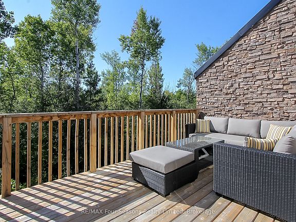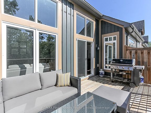 Seasonal Furnished Executive Rental. Rate is per month plus deposits. Please contact for availability for the season you wish to stay, in this stunning townhome that backs on to Green space and the Cranberry Golf Course! Executive rental, with beautiful furnishings and accoutrements. Three bedrooms-main floor master with luxurious Queen bed and bedding, ensuite bath with walk in shower and walk in closet. Upper loft with private Queen bed, in a spacious room with 4 piece ensuite. Lower level walk out features the third bedroom with two queen beds and an additional full bathroom. Rec room in the lower level for watching TV or playing cards and games or just relaxing. The main floor open concept living, dining and kitchen areas are well equipped. There is a walkout to large decking with glass panels to enjoy the outdoor view. Cathedral ceilings and expansive windows allow plenty of natural light in to enjoy your days and evenings. Gas fireplace with stone surround is perfect to snuggle up to for a morning coffee or glass of wine. Attached single car garage. Lawn care and snow removal is included in your stay. No pets and no smoking or vaping of any kind, thank you. The utilities and damage/cleaning deposits are in addition to the rent. Come for a visit to view, and treat yourself for a season of living in Collingwood. Close proximity to area ski clubs, Georgian Bay and numerous amenities the area offers.