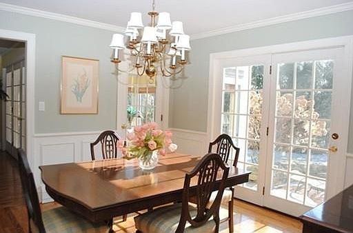 This handsome village cape offers a wonderful blend of formal rooms and comfortable family living spaces. Cathedral ceiling foyer leads to spacious, sunny living room with French doors opening onto a comfy, three season sunroom. Custom eat-in kitchen features cherry cabinetry, granite countertops and island with seating, as well as French doors that lead to an expansive deck. The kitchen is adjacent to the sun-drenched formal dining room with French door access to the deck. Step down from the kitchen to a fireplaced family room that offers soaring cathedral ceiling with skylight, bay window for loads of natural light, and custom built-ins including a wet bar... A spacious, first floor master suite, mud room and laundry complete the first floor. Winding staircase leads to second level with 3/4 bedrooms and sitting room. Two car garage, finished basement all set on a lovely lot of almost half an acre, in the heart of Padanaram, featuring lawns, terraces and gardens with mature plantings.