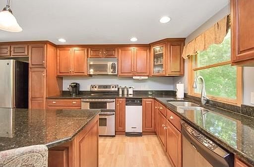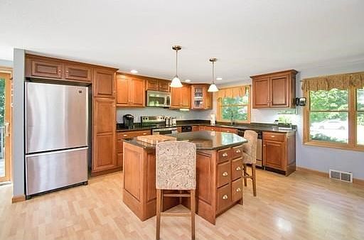 - Kit Dscrp: Dining Area, Countertops - Stone/Granite/Solid, Cabinets - Upgraded, Kitchen Island, Stainless Steel Appliances, Recessed Lighting, Flooring - Laminate, Countertops - Upgraded, Remodeled
