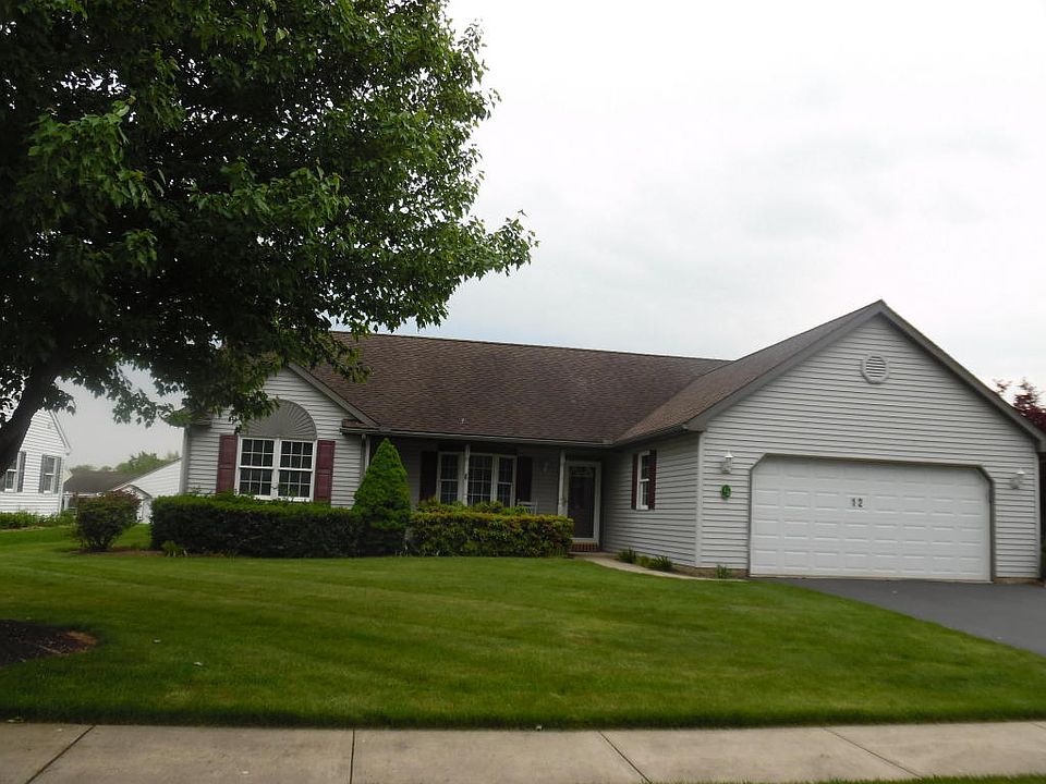 Bright and airy home with open floor plan, vaulted ceilings, 4 season room, neutral colors and a full basement with outside entrance. Lovely owners suite with large shower, walk in closet and double vanity. Eat in kitchen with pantry, two additional bedrooms and bath, and a large garage all on a level lot in Arbor Gate 55+ community. Lovely community center with exercise room, billiard room, meeting room and more.