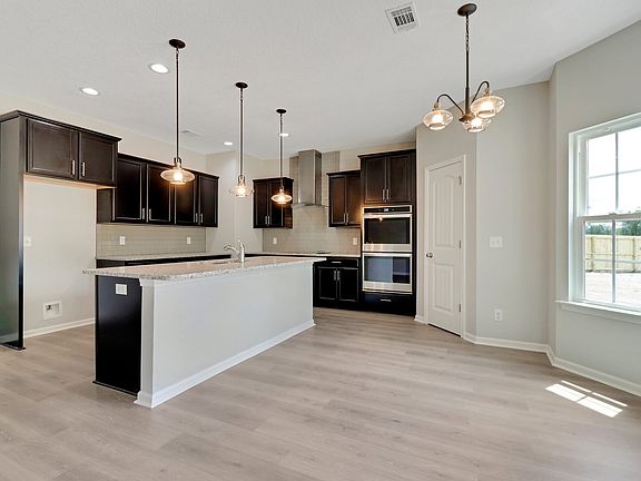 The Bradwell floor plan is one of our largest and a favorite with 5 beds, 3 baths, and 3374 heated square feet! Walking in from the garage, you conveniently enter into the large spacious kitchen with island and breakfast area. Along with a dining room, family room, and living room, there is also a bedroom with walk-in closet and a full bath. Walking upstairs, there is a master suite that includes a sitting area, big master bath, and huge walk-in closet. There are also 3 more bedrooms with walk-in closets, a laundry area, a full bath, and a two-story foyer. Artistic renderings are for informational purposes only. Actual floor plans, features and inclusions may vary.