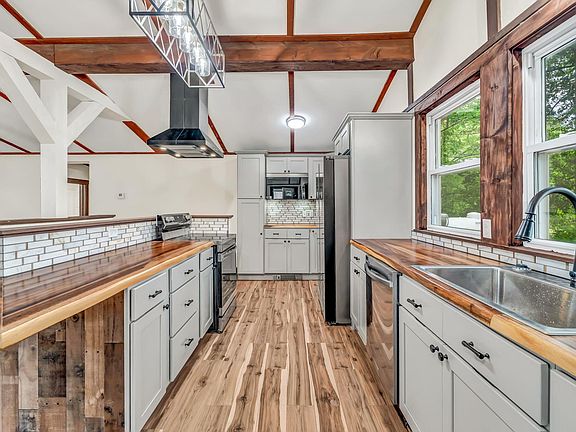 Discover this beautifully updated riverfront cottage offering year-round living with stunning water views, a modern kitchen, renovated bathrooms, and luxury vinyl plank flooring throughout for effortless style and comfort. Thoughtfully improved with a brand new roof and new heating system, this home is designed for easy living in a peaceful, private location, while still providing convenient access to nearby town amenities. Whether you're looking for a full-time residence or a serene getaway, this charming cottage is move-in ready and perfectly blends comfort, style, and natural beauty.