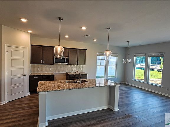 Savannah's most trusted local builder is proud to offer our Richmond plan. This home has some excellent features and upgrades including a tile separate shower and separate garden tub, 5 panel interior doors, 12' x 12' back patio, garage door opener with 2 remotes, upgraded lighting package with pendant lights above kitchen island, click plank wood look flooring in main living area and wet areas, upgraded cabinets, granite tops in Kitchen, quartz tops in all full bathrooms, upgraded kitchen backsplash, iron balusters on the bottom stairs, and tray ceiling with fan and light kit in primary bedroom. Home is nearly finished now. Pictures are of the actual home. All builder incentives applied.