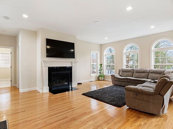 Spacious young custom crafted colonial better than new construction located in a quite desirable cul-de-sac neighborhood. Enter into an exquisite two level story foyer. This sun filled home features include open floor plan, hardwood floors, custom molding, large gourmet kitchen, high end appliances, double oven, large center island, custom built cabinetry, granite countertops, recessed lighting throughout, office with french doors, flex room, full bath and gas fire place on this level and so much more, this home has it all! The second floor has a large master suite with a huge walk-in closet with a cozy fireplace and a private bath with tiled shower, double vanity, and soaking tub. The three additional bedrooms are spacious with two full baths, laundry and a spacious den on this level adds to the charm. Gorgeous, finished basement with a spacious great room, gym, full bath, and storage. Conveniently located to T station, schools, shopping, MA Pike.