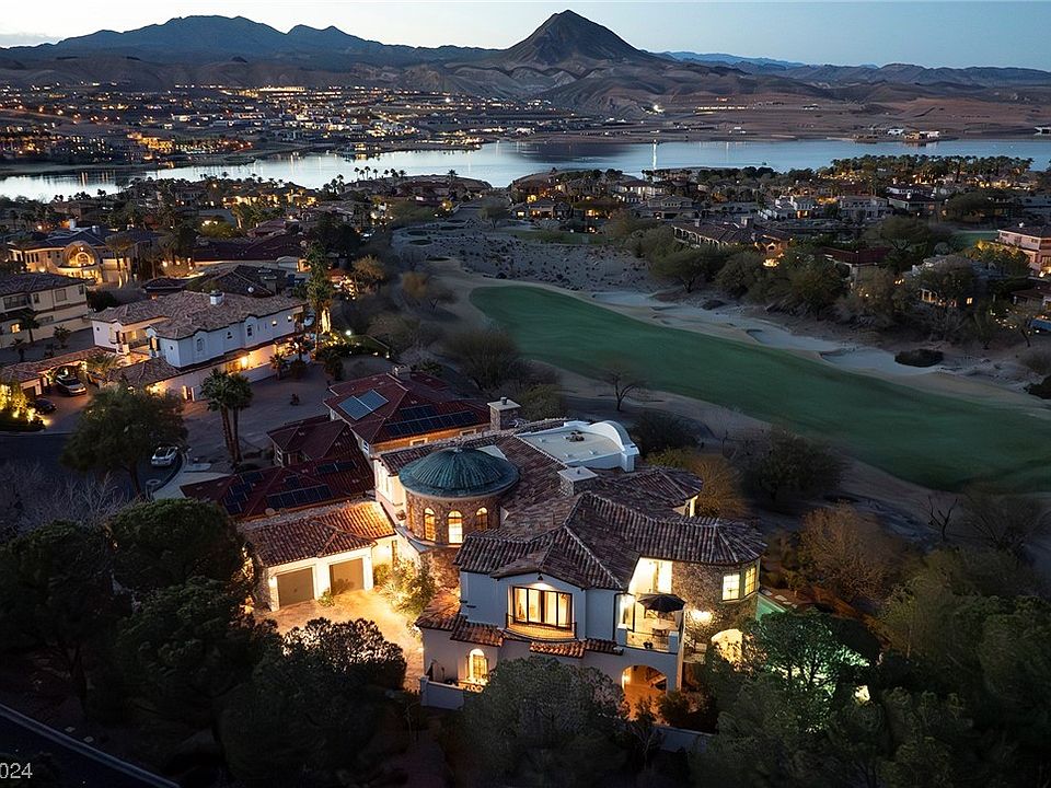 Sensational Santa Barbara-Style Custom Home in Guard Gated South Shore Lake Las Vegas. Glamourous Interiors-Refined Quality Finishes. Private Oasis has compound feel. Lake, Golf, Mountain & Night Light Views. 7002 SF,4 Bed+Office,6 Bath,4 Car,.33 Acres,2 Fireplaces on 7th Fairway. Gated Private Drive, Walk-In Wine Cellar, Wine & Whiskey Bar, Casita-Game Room w/Wet Bar, Den-Lounge, Office w/Wood Paneling, Elevator, High Ceilings, Entertaining Design, Viking Chef’s Kitchen w/ Range, Double Ovens & Dishwashers, Refrigerator & Freezer, Warming Drawer & Bar Seating. Oversized Primary w/Fireplace & Balcony w/ Lake, Mountain & Fairway Views, Jetted Bath w/ Ceiling Faucet, Onyx Counters & Big Custom Closet, Resort Pool w/Waterfalls, Slide, Spa, Built-In Lounge, Swim-Up Barstools. Built-in BBQ Kitchen & Bar. Covered Patios. Resort Lifestyle: Golf, Fitness, Tennis, Pickleball, Lakeside Dining. NV is a State WITHOUT Individual & Corporate Income Taxes offering significant savings for Residents.
