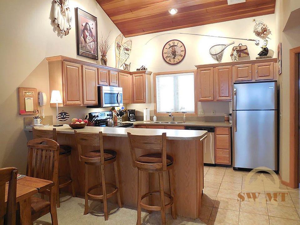The impeccable remodel of this 3BD/3BA, 1,541 sf Big Horn Condo, sets this unit apart featuring a beautiful custom log banister staircase. Conveniently located within walking/skiing distance to Poma lift, lake and all the resort amenities and activities at Big Sky Resort, this property is ready as a base camp for fun! ... comfortable mountain getaway or super rental income property. Sold furnished and turn-key!