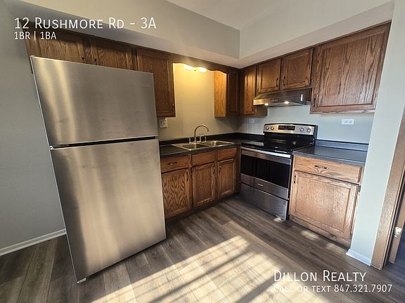 Welcome to your cozy new home at 12 Rushmore Rd #3A in Fox Lake! This inviting 1 bedroom/1 bathroom apartment offers an affordable and intimate living space, perfect for those who value style and ease. Located on the 1st floor, the apartment features updated plank flooring, fresh paint, and sleek stainless steel appliances that elevate its charm. The open living, kitchen, and dining area create a welcoming atmosphere, while the bedroom provides a peaceful haven with a standard closet and a well-appointed bathroom. Stay refreshed with the wall A/C unit, and enjoy the added convenience of being right next to the laundry room. Parking is on a first-come, first-served basis for residents with registered vehicles, making it simple to settle in. Situated across from Fox Lake Harbor and near Grant High School, this location offers both serenity and accessibility. Whether you're relaxing at home or exploring the nearby amenities, you'll love calling this small but cozy apartment your own. Don't miss this opportunityschedule your showing today! Enhance your credit score with Dillon Realty's automatic credit reporting service through CredHub for just $5/month. Residents are responsible for all utilities. Electricity must be set up in the resident's name, while water, sewer, trash, and pest control charges will be billed back to you using RUBS (Ratio Utility Billing System). This property is professionally managed by Dillon Realty. Apply online at dillonrealty. All occupants are required to submit an application. Contact us for details on our pet policy.
