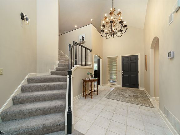 Welcome to this immaculate, free-standing condo in the gated-neighborhood of Auburn Knolls. This all brick 3 bedroom, 2.5 bath free-standing condo with vaulted ceilings, open concept, 2 balconies and private patio is a rara find in the heart of North Canton. Step inside the elegant 2-story foyer with open staircase and loads of natural light. The large great room has a beautiful gas fireplace and leads to a gorgeous composite deck with private views and peaceful ambiance. Additional balcony access leads into the massive master bedroom with attached bath with large jetted soaker tub, walk-in tile shower, dual sinks and huge walk-in closet. The open-concept kitchen has space for dining, coffee bar, and plenty of space for cooking and entertaining and boasts stainless steel appliances, quartz countertops and tile backsplash. Additional rooms on main level include a spacious office space with bay windows and crown molding, laundry room with built-in cabinets and half bathroom. Upst