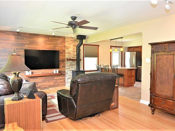 As you drive up the hill to this 3 bedroom westside home, you'll see why this home will not last long. Upon entering you'll walk into the living room with wood burner and lightly sanded hardwood floors. The replacement picture window looks out over a serene park-like setting that looks like you have no neighbors. The open floor plan leads into the kitchen with custom made cherry cabinets with dovetail drawers and stainless steel appliances. Three bedrooms with hardwood floors and a beautiful updated full bath round out the main level. Brand new oak steps lead down to the walkout basement where you can have another living room/rec room/play room with an entrance to the driveway. Another finished room is in the front part of the basement that is currently used as a 4th bedroom. The rear part of the basement is unfinished and divided into two areas. One area is the laundry area that's clean and bright. The seller is including the dryer. The other area is currently used as a workshop and has an exterior door to the driveway. Outside you'll find a very nice carport that can shelter 2 cars. The backyard has a garden area and two yard barns. A chain link fence surrounds most of the almost half acre property. This clean and move-in property will not last long. Updates per seller include Roof (2021), HVAC (2020), electrical panel.