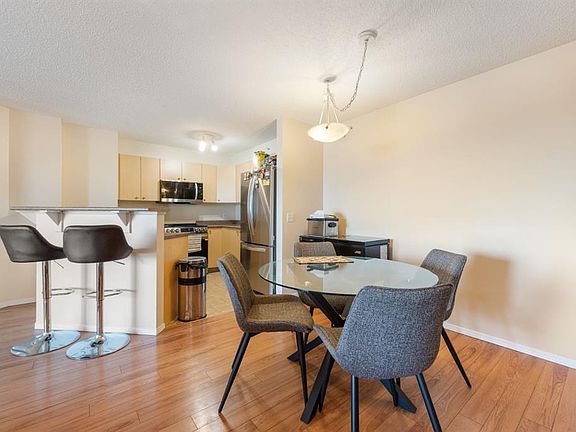 Condo fees that include EVERYTHING—heat, water, electricity, —plus brand new appliances (including washer, dryer, and all kitchen appliances) and fresh premium paint done just 6 months ago… all at a price that is simply unbeatable! Welcome to this beautifully maintained 2-bedroom, 846 sq. ft. top-floor suite—a perfect choice for first-time buyers, down sizers, or investors. Located in the highly desirable community of Cimarron Common, you’re just steps away from shops, restaurants, health and wellness services, parks, and pathways. Truly, you won’t even need a car. Inside, you’re greeted by a bright and spacious living room featuring a cozy corner gas fireplace and sliding patio doors leading to a large private deck—perfect for BBQs, morning coffee, or entertaining. The open-concept kitchen flows seamlessly into the living and dining areas and includes a convenient breakfast bar for casual seating and hosting. The primary bedroom offers a walk-through closet that connects to its own private 4-piece ensuite. The second bedroom and an additional 4-piece bathroom are ideally positioned near the entrance, providing great privacy for guests or family members. Enjoy the convenience of in-suite laundry and extra storage, making day-to-day living incredibly practical. Cimarron Common is known for its welcoming community feel, unbeatable walkability, and low-maintenance lifestyle. With all utilities included and major upgrades already taken care of, this home offers exceptional value in a vibrant location—at a price that’s hard to beat.