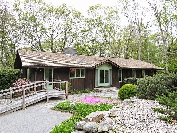 Inspired by architect Goodwin B. Steinberg this well maintained mid century modern ranch style home with a versatile floor plan is perfect for entertaining. Large windows and sliding glass doors bring nature indoors. Just one example of attention to detail in this home is the hand split cedar shake roof. A neighborhood home with almost 2 acres feels secluded in a park like setting, just minutes from the village of Niantic, beaches and boardwalk. Town records have the home listed as a four bedroom, however currently the home is being used as a two bedroom with the remaining two rooms set up as a den and bonus room. This is a probate sale for the original owner.