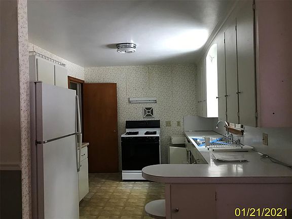 Cozy cape cod on nice lot. Two bedrooms, one bath. Second floor could easily be turned into another bedroom with a bath to make a master suite. Full basement. Level lot with trees and some landscaping. Fireplace in living room. Dining area just off the kitchen. Covered porch on the back of the house. Property sold as-is.