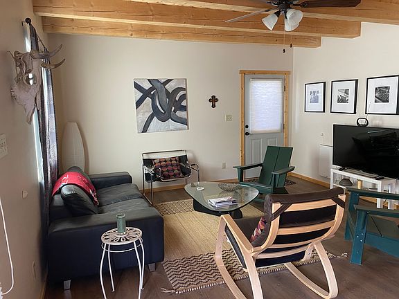 UNFURNISHED detached house on 1+ acre lot. Two bedroom with large closets, one bath with jacuzzi shower/tub. Large bedrooms and bathroom with washer/dryer. Refrigerator and stove in nice size kitchen with bar that can seat 3 . Blind coverings on all windows. Carport. Located in quiet safe newer neighborhood in El Prado. Available Currently available $2300/month one year lease with first and last deposit. One small dog, under 25 pounds welcomed with $250 pet fee. Owner pays water, road fees, one year lease, no smoking.