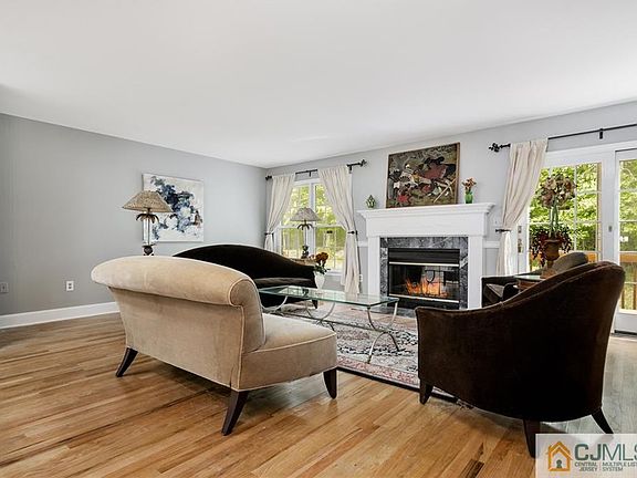 Immaculate condition and striking style detail every inch of this Princeton Walk 2-bedroom. An updated powder room will please guests, as will the fireplace and views of backing woods that draw the eye in open plan living and dining. Hardwood floors and a chair rail unite the spaces with elegance. Connecting is the brand new kitchen, which is as beautiful to look at as it is effortless to use, positively gleaming with a leathered granite pull-up island, stainless appliances, and a glass tile backsplash. Laundry and the 1-car garage are beyond. A finished basement provides space for Netflix, games, and storage. Skylights bring sunshine to the upstairs landing. Both bedrooms are vaulted - one with use of a hall bath, and the master suite, whose newly renovated bath is a dream with an oval window-tucked tub, separate shower, seeded glass fixtures - all framed by exquisite tile.
