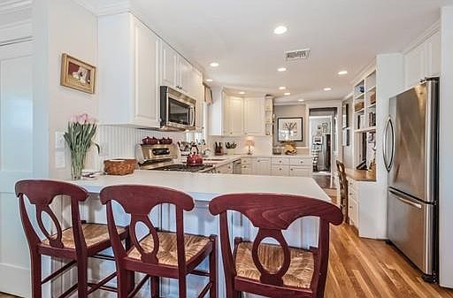 Perfect in-town location! WALK to Rec Center, Town Hall, Hingham Center, Main Street shops and restaurants, library and harbor. Fabulous four bedroom, 2.5 bath colonial built in 1932 has many custom built-ins and charming cozy rooms. Lots of detail and beautiful architecture add to the appeal of this home, along with fireplaced kitchen, hardwood floors, central air and professionally landscaped fenced in yard with numerous mature plantings as well as irrigation system. An additional 267sf in finished lower level offers a play/family room as well as an office. Bright and sunny, this home can be enjoyed any season. Relax or entertain by the kitchen fire in the winter and enjoy the private bluestone patio in the summer. Transportation is just 5 minutes away which makes commuting to Boston easy. Rare opportunity to move into one of Hingham's most sought after neighborhoods. Offers will be reviewed as they come in.