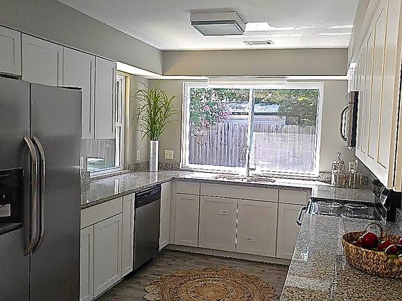 River Bend pridefully built with custom River Rock fireplaces, a masterful large den that is open to the elegant Chef stainless and granite kitchen with picture windows looking out to the large yard with privacy fence, a large master bedroom big enough for a king bed as well as the rest of your furniture, bathrooms that are large enough for a built in vanity desk as well as a sink and built-in cabinet drawers. There is a large bonus room that could be a man cave, she shed, additional bedrooms or....a bonus room. Enjoy the quiet and privacy of living on the Sandy Creek cul-de-sac. Newly listed and available for showings.