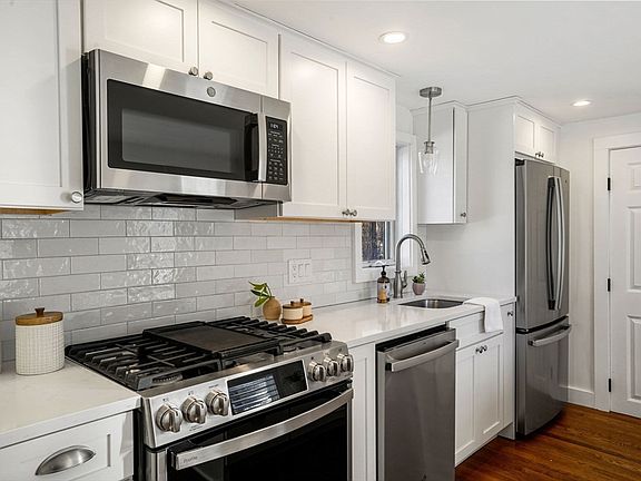Welcome to this charming farmhouse-style home in desirable Canton offering the perfect blend of historic character and modern updates! Originally built in 1890 and thoughtfully renovated, this home features new kitchen & baths, hardwood flooring, roof, updated electrical, & major systems—all completed within the last several years. The main level hosts a well-appointed kitchen w/island, quartz counters, SS appliances, ample cabinetry, & a convenient half bath. Open living & dining areas provide direct access to a back deck, creating an ideal flow for entertaining! Upstairs is a king size primary bedroom w/double closet, a large 2nd bedroom, & a spacious full bath - all with beautiful lofted ceilings! A full unfinished basement offers laundry, abundant storage, & exterior access. Outside, enjoy a fully fenced-in backyard w/storage shed & maintenance free vinyl siding. This absolutely turnkey home is a commuter's dream with easy access to the commuter rail, I-93, & I-95 - a must see!