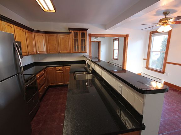 3bd/1ba Apt for Rent, 1st floor, Handicap Lift on Deck for Access, Private Backyard with Hot Tub and gardens and off-street parking for several cars. Hardwood floors throughout, updated kitchen, wood stove, Tenant pays oil for heat, electric, trash, lawn and snow. Heat is about $1500 - $1700 per year Electric is about $90 per month with hot tub, $45 per month without hot tub. Upstairs apt is not allowed use of driveway unless a snow ban is in place. They are not allowed use of hot tub or yard either. Available NOW