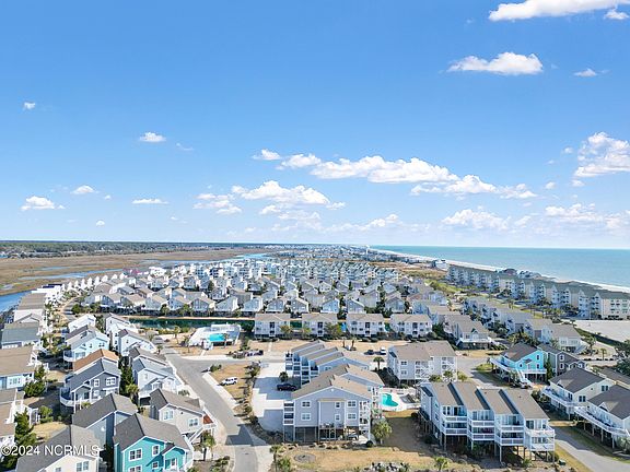You'll love the upgraded kitchen, charming decor and spacious layout with a perfectly cozy bunk bed nook area and a pull-out sofa bed for hosting friends and family on a beach getaway. The private porch is ideal for morning coffee as you check the tide levels of Jink's Creek. The property has a large, fenced-in community outdoor pool surrounded by pristine landscaping with bench seating and a pergola. A staggering five closets, and a large ground floor beach storage room will provide plenty of storage space.