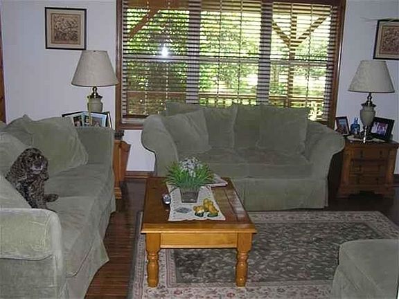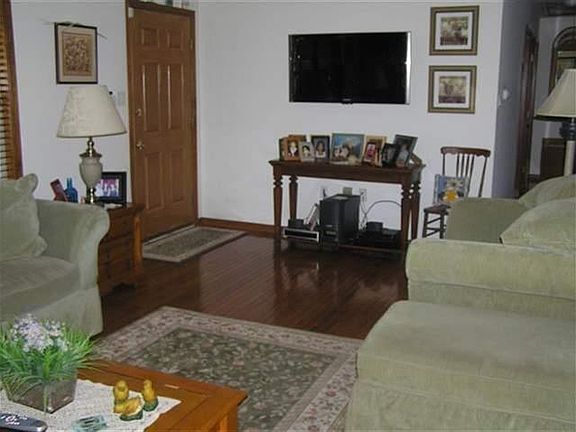 Nicely maintained 3 bedroom, 2 bath rancher on beautifully landscaped 1 acre lot. This home is nestled in the trees which creates a feeling of privacy. There is a paver walkway leading to the covered front porch & once inside the living room has a cathedral ceiling, a gas fireplace and hardwood floors which extend into the hall, master & dining room. The kitchen has stainless appliances including a dual fuel range, a tile backsplash and a breakfast bar. Off the dining room is a year round sunroom with a gas wall heater. The master bdrm has 2 closets plus a a linen closet & private bath with stall shower. The laundry room has upgraded washer & dryer plus a laundry sink & lots of cabinets. A bonus is the finished 2 car garage which is being used as a family room with built in cabinets & bar sink. The rear shed is a craftsman's delight w/ heat, elec, cold water, cable & loft storage. The back yard is private w/ a rear deck, patio and fenced in yard lush with mature trees and ivy.