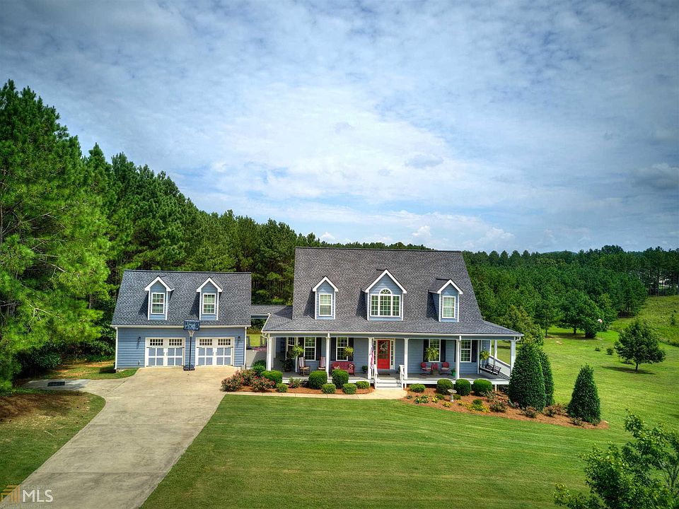 This stylish traditional style 6 bed 3 bath home - located on 5+ acres of beautiful countryside with expansive wrap around porches in Derby Subdivision. Open floor plan with 2 story entrance foyer, island with serving bar and breakfast area in kitchen - open view to living room with stack-stone fireplace. Hardwood floor throughout main level, granite countertops, and stainless Jenn-Air appliances. Oversized Master on main with custom bathroom, double vanity, tile shower, and jetted garden tub with tile surrounding backsplash. 2 spacious carpeted bedrooms upstairs with full bath and an open balcony overlooking the living room. Fully finished basement with custom ceiling, 3 bedrooms, full bath, den, and workshop with an exterior entrance.