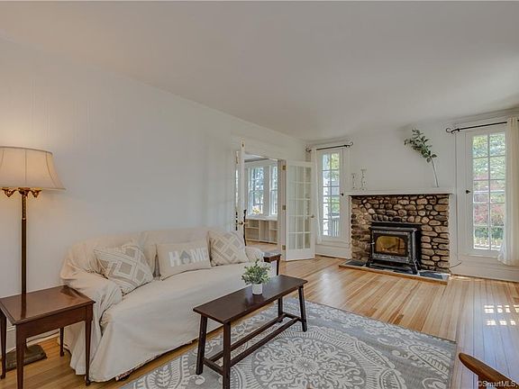 If you're looking for a charming Simsbury home in a desirable walk-to-town location, this is the house for you Character abounds in this sunny colonial with 4 bedrooms, 2 full baths, large backyard, screened porch, English-Style garden and expansive deck. Enjoy the sounds of Simsbury's summer concerts from the comfort of your huge deck. The home is a short walk to Starbucks, restaurants, the extensive Rails to Trails system, Memorial Park, Central School and Henry James Middle School. The interior is freshly painted with inviting neutral colors. The light-filled main living level features hardwood floors throughout, large windows allowing the sun to stream in, interior French doors between the dining room and living room, built-ins, a stone fireplace, and french doors leading to the cozy screened porch. Stainless steel appliances, a brand new backsplash and fresh paint grace the eat-in kitchen. The 4th bedroom is on the main living level and is currently used as an office. Three spacious bedrooms are on the second floor. The master bedroom features newly refinished hardwood floors and a massive walk-in closet. Two more large bedrooms with hardwood floors round out the second living level. Need more space? The partially finished, walk-out basement provides additional room and could be a great rec room or family room. ****Deck to be painted prior to closing ****