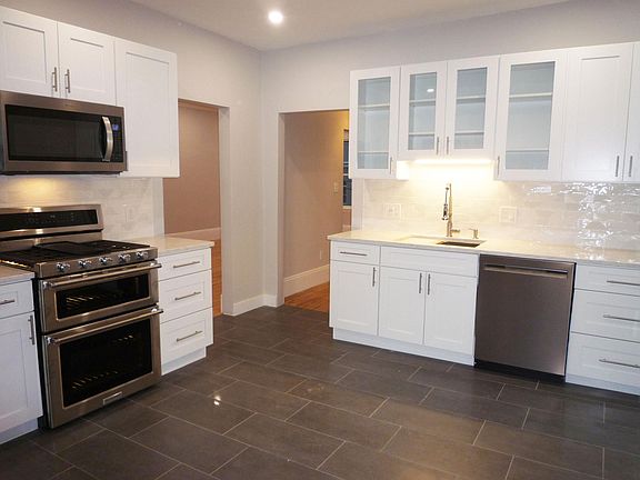 HALF-FEE! Avl JUNE 1. WALK 7-8 min. to DAVIS T! (along the bike-path). BEAUTIFULLY RENOVATED bi-level deleaded 5 bedrooms, 2 baths, on the upper two floors of a 2-family house on a quiet street. NEW KITCHEN and BATHS! Front-loader WASHER & DRYER in-apt! Super-large refrigerator! On SEVEN PINES AVE near CAMERON AVE. Large open living and dining area. Large redone eat-in kitchen with new QUARTZ countertops, new cabinetry, new STAINLESS STEEL appliances, gas range with DOUBLE OVEN, large walk-in PANTRY. Nicely-sized bedrooms with closet accessories. Private front PORCH, fenced back YARD. Storage in basement. A/C. Tenant pays heat (oil and electric), hot water and cooking (gas), and electricity. TRIPLE-GLAZED WINDOWS, INSULATED WALLS. Top floor has back-up electric baseboard heat. Total average utility cost $224/mo (2020). On-street parking only. Cat ok/negotiable. Landlord pays water. Tenant pays oil, gas, and electric. Up-front: first, last, security deposit. Broker fee: half-month rent. No smoking. Cat ok/negotiable.