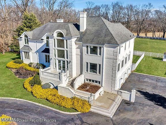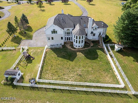 This beautiful 7+ acre estate complete with 5 stall barn and 2 large paddocks in one of the best locations in Morganville makes this the perfect buy! With 7,400 square ft. of 1st and 2nd floor living space, this interior has been meticulously maintained. An elegant two story foyer with a double sided gas fireplace, an open and bright layout, and a sitting room with panoramic windows are just a few of the architectural upgrades throughout the home. Most of the flooring is brand new, along with many other items throughout. The spacious and vaulted master bedroom suite features two large walk-in closets and vaulted bathroom. The full finished basement features an additional 2,000 sq.ft. of living space, a gas fireplace, and a full bathroom. Property includes a 5.54 acre farm assessed piece