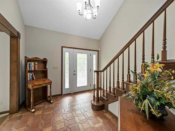 Beautiful brick story and a half on a gorgeous drive in unincorporated STL county! Walking distance to Sioux Passage Park. Rolling hills, pretty roads and lovely homes line the way to this fabulous north county find. Set back on a full one acre lot, this home is loaded with curb appeal and custom charm. The spacious 2-story entry way makes a big first impression, guests will know they're walking into a special place! Gleaming hardwood floors and higher end newer carpeting show off the care the home has had. Rich, earthy dark wood trim adorns every room, contrasting with the fresh, modern paint throughout to marry the best of both worlds - totally on trend! Euro style kitchen has wow factor, natural light beaming in from every direction. The family room is a real gem: vaulted ceiling, beams, loft, and stunning fireplace wall, all opening up to a huge patio through one door and a covered deck through another! Large master suite. New roof. Lots of upgrades, plenty of extras throughout!