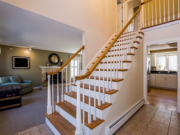 This meticulously cared for colonial is traditional with a touch of modern. The entryway invites you into a living space featuring a beautifully encased stone fireplace ideal for formal or family living. The dining room with wainscoting, glass paned door and hardwood flooring leads to the warm, sunlit great room. This incredibly desirable room with updated kitchen boasts pitched ceilings, skylights, recess lighting, granite counter tops and french doors that lead to the back deck. Enjoy an evening of entertaining or casual dinners at the kitchen island gazing at the gorgeous white washed brick that surrounds the pellet stove. Second floor master suite is spacious with vaulted ceilings, soaking tub, office space, closets galore and wall to wall carpeting while additional bedrooms and hallway feature gleaming hardwoods. The finished basement offers additional living or work space, playroom or in-law with full kitchen and bathroom and French doors leading to the sprawling back yard.