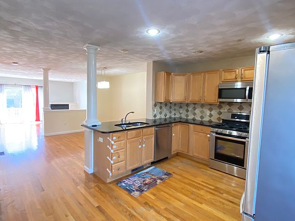 This lovely townhouse is located in Medford's Shipside Village. This townhouse consists of 3 bedrooms and 2.5 baths. As you walk into the house on the lower level, there is one bedroom and a half bath. Walk up the stairs and find yourself in the living space. The living room, dining room, and kitchen all have an open feel with hardwoods throughout. The living room has a fireplace and a small porch off of it. The kitchen has all recently installed stainless steel appliances. The third floor is carpeted. The master bedroom is large, has an ensuite bathroom and lots of closet space. There is another full bath on the third floor and the last of the three bedrooms, also a good size. The location is right behind the Medford Middle School, and the Mystic River, with paths running along it. The unit has Laundry in Unit, Central A/C, 2 Garage Parking Spaces, and a Balcony. Move in cost: First, Security, and Broker Fee