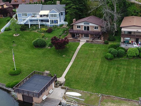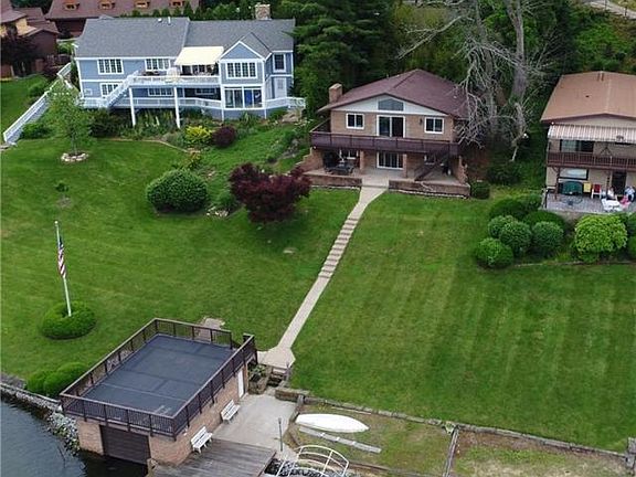 LAKEFRONT - Completely redone in 2014. New windows, doors, furnace, C/A, electrical box, security system. Kitchen has high quality cabinetry with soft close drawers, granite counters, stainless appliances. New bathrooms upgraded with tile tub/showers, nice cabinetry and granite counters. Stunning views of lake the minute you walk through front door. All rooms have a lake view! Open floor plan with vaulted ceiling on main level and loads of natural light. Wrap around deck made of sustainable material, front and rear concrete patios that are great for entertaining. Includes two car garage PLUS brick boathouse (20 x 26) at the waters edge with upper deck. Excellent outdoor living areas, prime location near community gatherings and main beach. Lake Mohawk is a private, gated community located approximately 23 miles south of Canton with 500 acre lake for boating (unlimited horsepower) and fishing, three beaches, tennis courts, golf course, baseball field, clubhouse.