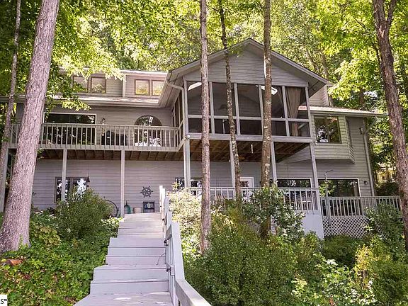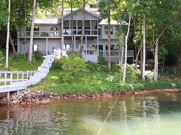 Sit, relax and enjoy the beautiful lake and mountain views for this amazing lakefront home located in the gated community of Keowee Key on pristine Lake Keowee. This 4 bedroom, 2.5 bath home has an open floor plan with a wall of glass that bathes the inside in natural light. The master suite has a wall of mirrors that hide both the master bath and a large walk in closet. These mirrors capture the light from the clear story windows and give this room a lovely glow. The living room and dining room with its cathedral ceilings features a beautiful fireplace and an uninterrupted view of the lake. The large kitchen will make the 'chef' in your family happy with its breakfast area, big bay windows that let them enjoy the lake and mountains as they prepare a meal. There is plenty of room on the main level to entertain both family and friends. Off the living room there is a large screened porch that leads to a great deck. Downstairs there are 3 bedrooms, a family room that all have lake views and access. There is also an office/craft room and a full bath. Down a short hall and you can take a break with your favorite new book as you sit on the porch swing on the downstairs deck. There is a gentle slope to the lake and a covered dock that has lots of room for lake toys! This home is priced to sell. Don't miss it! Keowee Key is a property owner owned gated community on Lake Keowee in Western South Carolina. The community amenities include 18-hole golf course , an extensive fitness center with an indoor pool, racquet ball courts, tennis center with ten tennis plus four pickle ball courts, a full time teaching professional, country club, boating facilities and docks, two outdoor swimming pools, walking trails, lakeside beaches and parks, a dog park, community gardens area, shuffle board courts and many other facilities and organizations that enhance and satisfy the many interests of its residents. With more than 1400 single family homes and about 350 condos/townhomes, Keowee Key offers a wide range of housing styles and values for a large full time population from many places and diverse backgrounds.