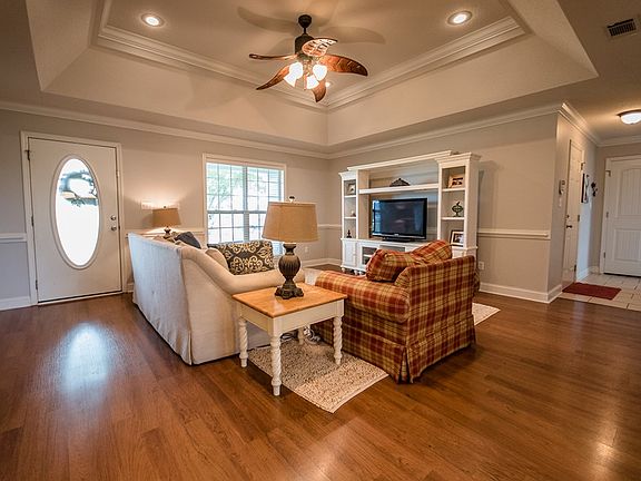 Move in ready 3/2 home in the country. Less than 10 from MAFB & this home is the perfect retreat with a huge lot. Open & split floor plan with large great room with trey ceiling with new interior paint. His & her closets w/ spacious master bath. Dual sinks and large soaking tub. Kitchen is open to breakfast room with built in bench seating. You will love the covered patio for entertaining. Large fenced in yard, play ground and storage shed is included! USDA home loan eligible!