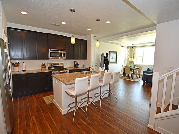 Most popular floor plan in this new development! The "Griffith" has a main floor master bedroom, 2 huge family rooms, 2 decks/patio's and 3 total bedroomd. This is a corner unit with great views of the mountains. Wonderfully finished, bsrely lived in and ready to move into. Walking distance to Station Park and Front Runner, minutes to I-15 and Legacy Highway. Close to the new High School coming in 2018.