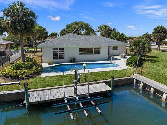 Experience the epitome of island living in this charming 2-bedroom, 2-bathroom home nestled within the prestigious gated community of Queens Cove. Enjoy exclusive access to a private beach and your own boat dock with lift, offering easy access to the Ft. Pierce inlet just a 15-minute boat ride away. Boasting a newer roof and a 2-car garage, this home offers both comfort and convenience in a highly desirable waterfront setting.