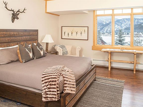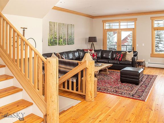 This beautifully renovated end unit luxury condo located in the heart of the Big Sky meadow is turn-key and ready to enjoy. Its location bordering open space with a creek running through the landscaped backyard plus beautiful mountain views create a picturesque environment. This unique unit has an added bathroom on the main floor, a junior master suite on the lower level and a master suite on the upper level along with two other bedrooms. Additional benefits also include a two car garage, secondary laundry, hardwood floors throughout, hot tub, high end appliances, and professional interior design. The condo community includes a clubhouse with fitness center, pool, and hot tub, with the Crail Trail meandering by, linking to many miles of community and forest service trails in the area. With proximity to the Big Sky Golf Course, Meadow Village Center, Town Center, and community park, it is a great location to take advantage of the recreation and mountain town amenities of Big Sky