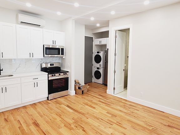 This newly renovated 2-bedroom, 1-bathroom apartment is situated in the heart of prime Bed-Stuy, tucked away on a peaceful street. You'll be just minutes from Pratt University, the G train, and some of the best bars and restaurants the neighborhood has to offer. Unit Highlights: - Two spacious bedrooms filled with natural light - In-unit washer and dryer - Large open-plan living area and kitchen - Contemporary kitchen with stainless steel appliances - Split AC and heating units throughout - Beautiful hardwood floors - One stylishly designed bathroom - TV with access to CCTV security for added peace of mind