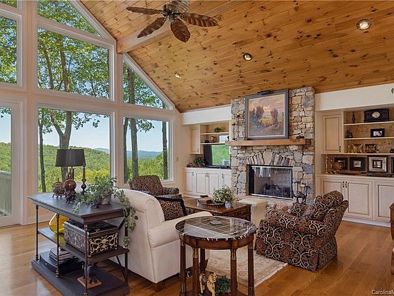 MAJESTIC MOUNTAIN VIEWS... await you from the inviting deck, screened porch and the walls of windows from this spectacular home. Enjoy a relaxing lifestyle surrounded by the beauty of nature, open floor plan with the privacy of an expansive master suite and bath on the main level, 2 guest bedrooms, 3 baths, gourmet kitchen, and an inviting living room with fireplace and custom cabinetry. Screened porch and deck is perfect for relaxation or entertaining. Enjoy all the community amenities which include: Golf course, tennis, clubhouse, restaurant, pool, walking areas so much more. Call today to preview this lovely home.
