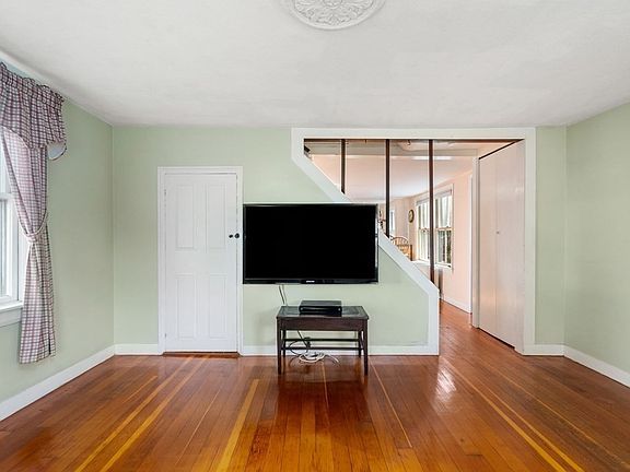 AMAZING PRICE FOR THIS LOCATION! Located in the Newton Upper Falls Historic district is this 3 bedroom, 2 full bath Colonial/Greek Revival home looking for the right buyer to put in some sweat equity! Main level bedroom/family room, updated kitchen and walk out to private backyard space. Sunny, open floor plan blends the living room, dining room and eat-in kitchen. 2 staircases and separate den (unheated). Main level laundry room. Upstairs are 2 bedrooms and 2 full baths. This home used to be a 2-family, current use as single family, but new owner could create an accessory apartment with owner occupancy. Basement with updated Buderus furnace, roof 2009. Minutes to Route 9, commuter rail, shops, restaurants. Come make this one your own in a great Newton location!