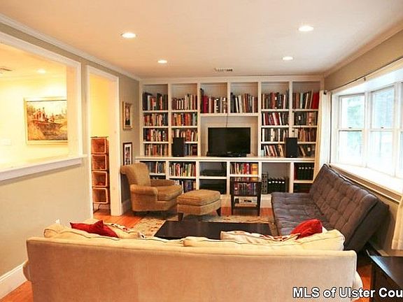 Charm, style and location. This newly remodeled ranch is a short walk to the village of Tivoli, yet nestled on a quiet dead end street. The first floor has a wonderful open floor plan with an eat-in kitchen, dining room, and large family room leading to a spacious raised deck overlooking picturesque woods. The finished basement has a large open family room, bedroom/office, laundry and stone patio. Hardwood floors, AC, and ample built-in bookshelves. Beautifully set on 0.34 acres.