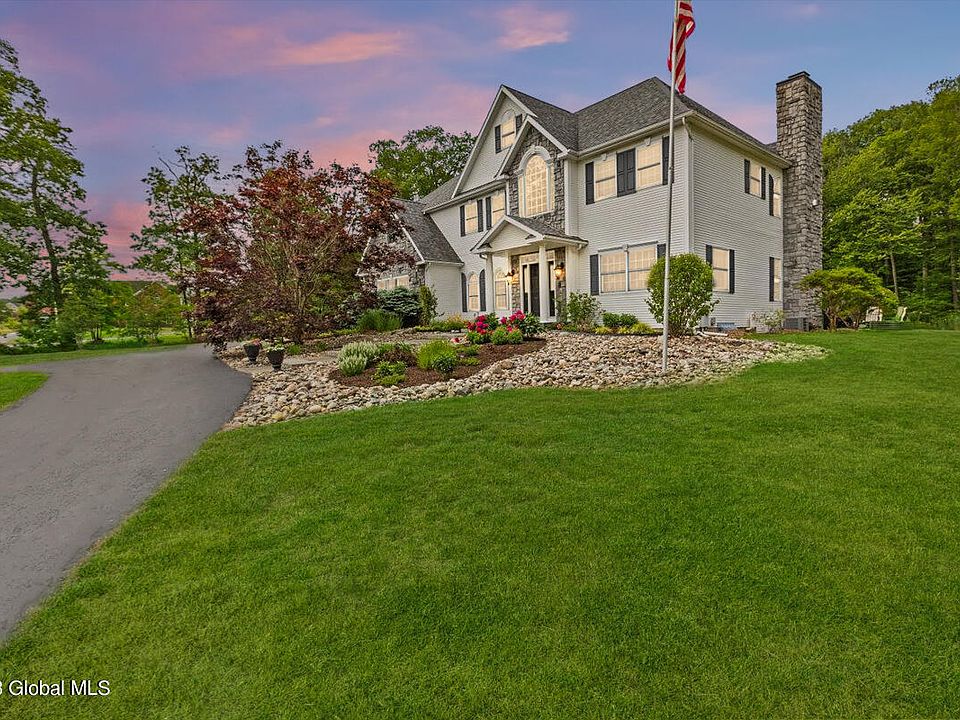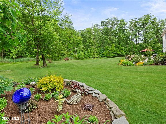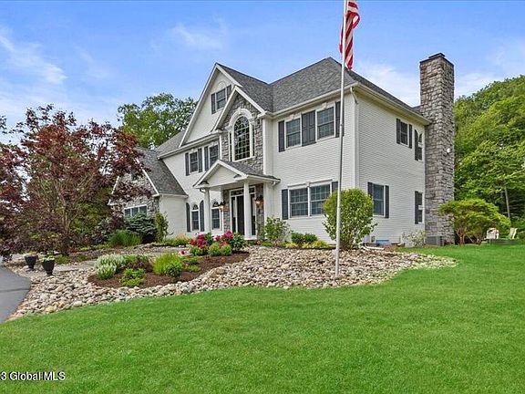 This beautiful 4 bed, 2.5 bath home in East Greenbush Schools sits at the end of a dead-end street on 2 private acres with extensive gardens. This home is equipped with some of the latest technology - you can control your appliances, electronics, and more with your phone making it truly a Smart Home. Get ready to entertain in your custom kitchen with high end appliances (NEW Wolf Oven w/Range and Sub-Zero Fridge/Freezer), as well as in the large backyard with a patio and fire-pit. All bedrooms are spacious w/natural light, and inside the primary bedroom you will find a gas fireplace, a remodeled bathroom w/tech upgrades, and a walk-in closet. The large basement features a stunning wine cellar (& new furnace, roof 2018). Only 5 minutes from shopping, schools, restaurants, and the highway!