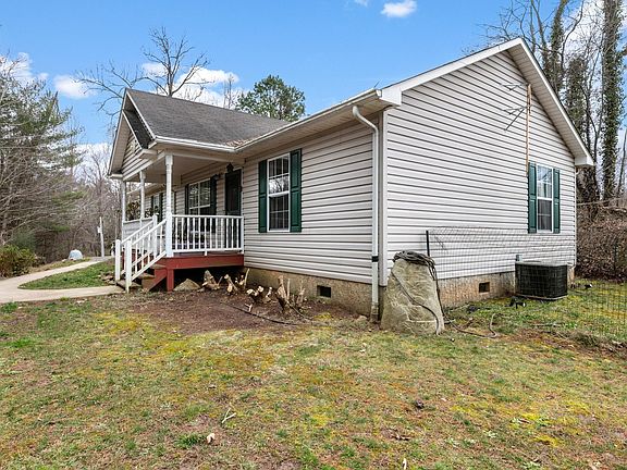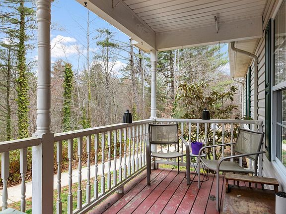 Charming one-story home in a beautiful setting on 1.29 acres! You'll love the covered front porch and level yard around the home. Enjoy the woodsy surroundings on cool nights by the firepit! Inside, the open floor plan boasts vaulted ceilings, vinyl plank flooring, and fantastic space. Spacious kitchen touts breakfast bar, extensive countertops, and wonderful cabinetry. Dining area includes access to the back deck. Lovely primary bedroom suite includes bathroom with dual vanities. 2 other bedrooms are well-kept and offer more terrific space. Attached 2-car garage! Don't miss this rare opportunity in a gorgeous natural setting away from the buzz yet still convenient to amenities. Just over 20 mins to downtown Asheville!