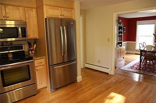 Great value in this spacious Colonial in neighborhood of lovely homes near Portland. 4 BR's, 2.5 bath, new custom kitchen open to FR w/woodstove, formal DR, LR with fpl, finished FR on 3rd level, finished basement, & 2 level deck. Best deal in Stapleford!