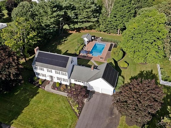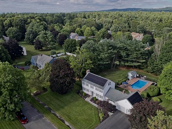 You'll fall in LOVE with this 3BR, 2 1/2 BTH Colonial home situated on a lushly landscaped 3/4+ acre lot complete w/a 16X32 SOLAR HEATED SALT WATER POOL in sought after Stonegate Estates! UPDATES galore (see Home Improvements attachment), lots of natural light & flexible living options! The family room features cathedral ceilings, FP w/Harman pellet stove insert, custom built-ins & newer sliders to access the fabulous backyard (fenced in area) + is open to the large eat-in kitchen! Front to back LR w/FP is perfect for entertaining as well as the formal DR. 1st fl 1/2 bath. PRIMARY SUITE has vaulted ceiling, soaking tub, walk-in shower & dual sinks. Two addt'l BR's & remodeled full bath on the 2nd floor. BONUS 3rd floor room f/gaming/teen/office + walk-in storage! Finished basement room & the oversized garage has storage loft + extended area f/sports car/toys! Central AC, wired f/generator, new sprinklers, new tankless HW heater, OWNED SOLAR PANELS w/2 EV CHARGERS = HUGE energy savings!