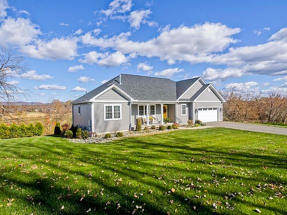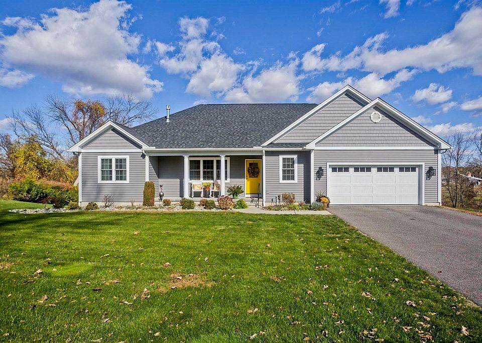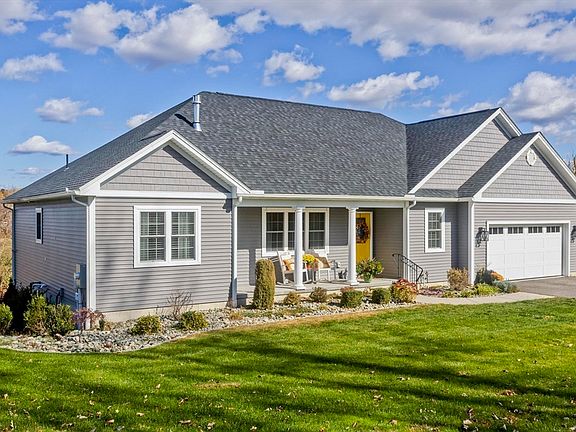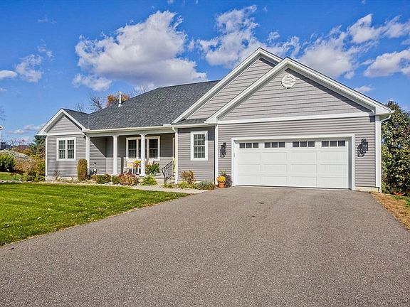 Welcome to this Amazing 5 year young Executive Ranch in one of South Hadley's premier neighborhoods! This home has curb appeal, a wonderful floor plan and views! The entrance to this home has a lovely front porch, perfect for a few chairs or some seasonal decorations! The living room area has a floor to ceiling stone fireplace for warmth and ambiance on the colder New England nights. The flow continues into the kitchen which has stunning granite counters along with an oversized island great for entertaining. Two bedrooms and a full bath are located on one side of the living area and the primary bedroom and en suite are privately located on the other side of the living area. The Primary bedroom has a custom tray ceiling, a spacious closet and an en suite with a water closet, a glass enclosed shower and a double vanity. But one of the best features of this home is the newly added 3 season sunroom located off of the dining area...It is perfect for enjoying the mountain views!