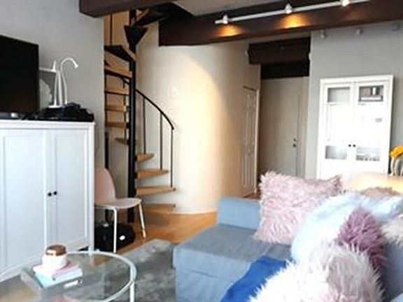 NO FEE JUST REDUCED !! BEST DEAL IN THE BUILDING !! This is a rarely available, 2 bedroom, 1 and 1/2 bath penthouse duplex, in a much desired concierge building. Amenities include: 24 hour concierge, an attached garage for rental parking (if desired), an in ground pool, several decks, a fitness room and elevator..The unit has high ceilings with wood beams, hard wood floors throughout, over sized windows, a half bath on the first level, with an open floor plan for entertaining. The upper floor consists of two bedrooms and a full bathroom.. Individual zoned heating and built in wall unit air conditioners are installed in every room, for you to control. Close to Whole Foods, transportation, hospitals, restaurants and shops, this is an ideal location, for those who chose the best of city living.